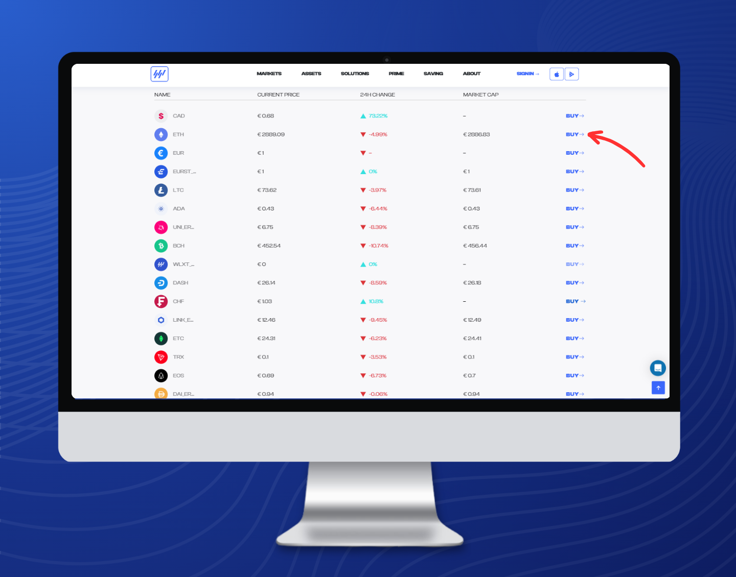 Once you've found the desired currency, click on the **\[Buy ->]** button associated with it to proceed to the buying page.