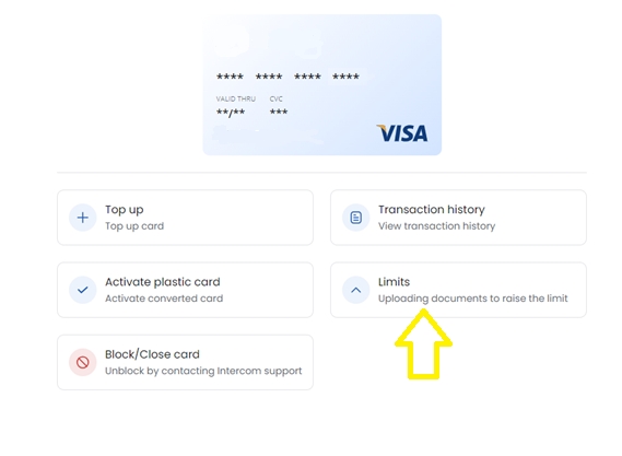 Log into your account and go to the "Card" Menu