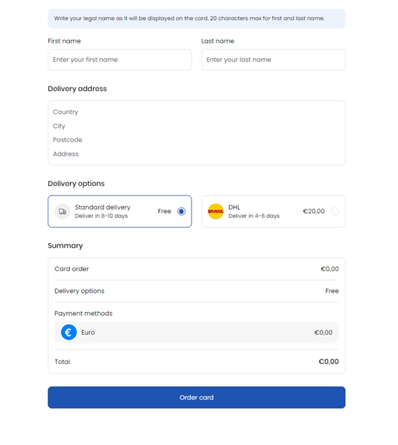 - Fill in all the necessary information, and choose an account to pay for the order.
