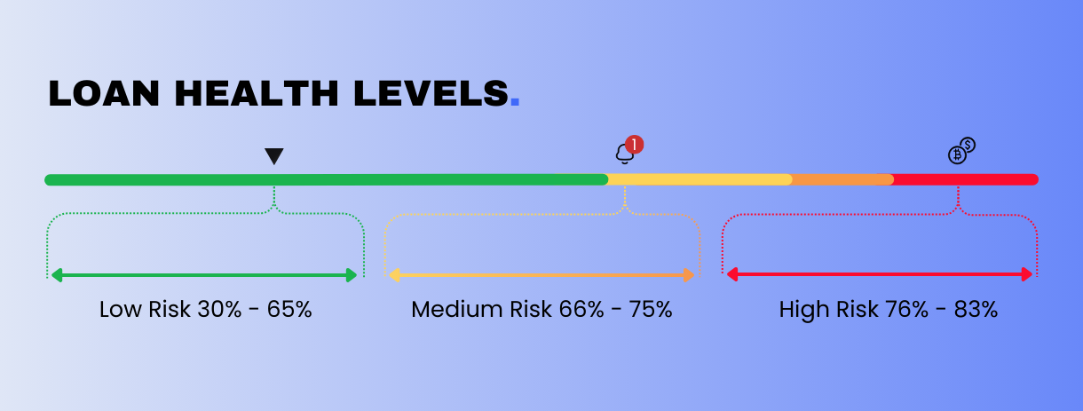 Medium Risk (66% - 75%): Occurs when the value of collateral drops, leading to an increased LTV%. You’ll be alerted to take necessary action to avoid the high-risk area.